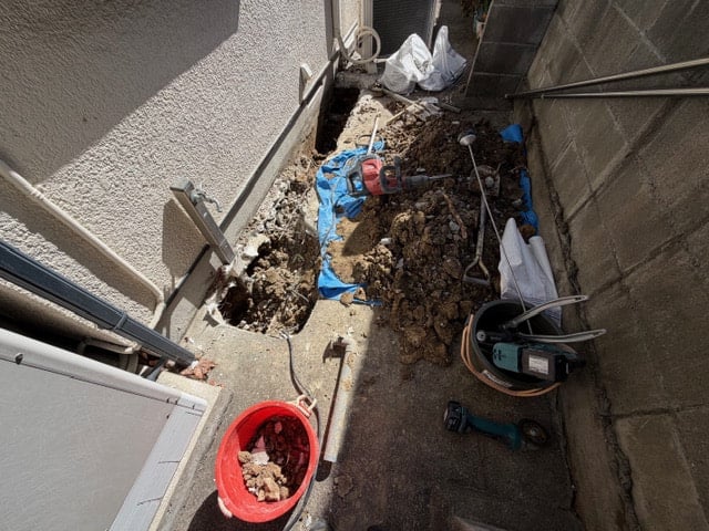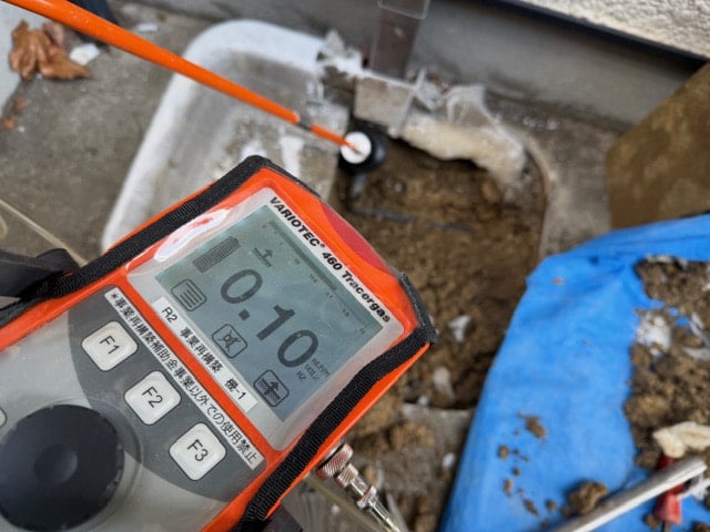 予想外の配管がしてあった事もありかなりの距離を追いかけましたが屋外ではなく建物内床下コンクリート下で漏れているようです。水素ガスがコンクリート土間下を伝って屋外に出てきていたのでかなり悩まされましたが配管ルートと漏水範囲は絞り込めたので来週バイパス配管できっちり直します。
