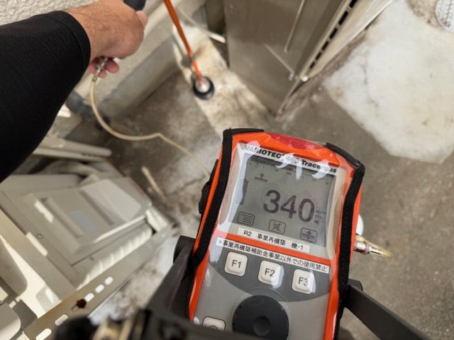 今日は朝から漏水調査。以前簡易調査で何もヒントが出ず秘密兵器の投入です