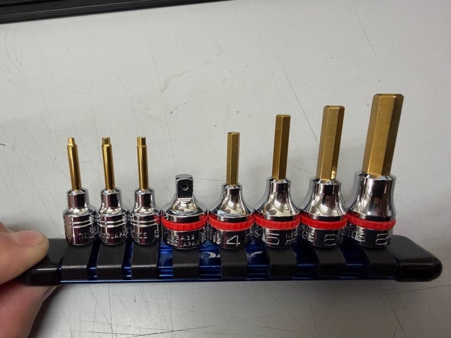 ちょっと前に軍備増強で追加した2,5mm,3mmの六角レンチ。neprosシリーズには2mmもあって買うか買わないか迷ってこのサイズは流石に普通の六角棒でいけるやろ・・・って判断で買わず。でもちょうどソケットホルダーが一つ空いてる。作業用ソケットって歯抜けではなく一通り揃えるのが基本っていうか男のこだわり。何度も見ては考えてまた見ては考えて・・・