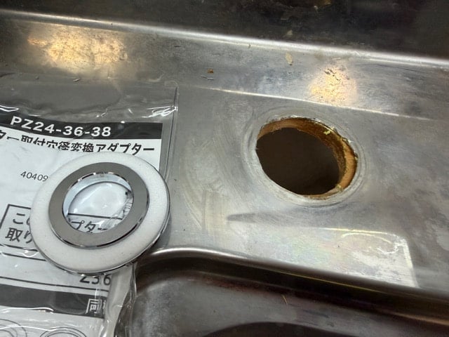 嫌な予感的中。単水栓なので本来φ25の穴のはずがφ36。流石にこれはないでしょう・・・・