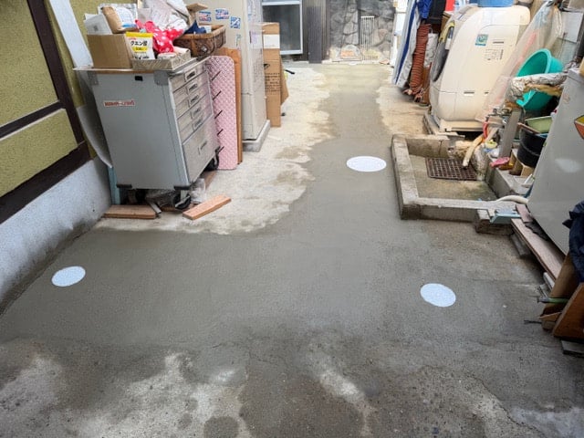 今日は朝からモルタル土間復旧。場所が場所だけに撹拌マシンで袋砂15袋(375kg)セメント5本(125kg)を練り上げ打設後に仕上げ。練った回数は15回で途中気が変になりそうでした。