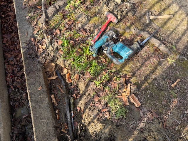 40分以上かけて撤去した木の根。見事にHIVP20のソケットを破壊していました。きれいに木の根を撤去出来たらあとはこっちのもんです。