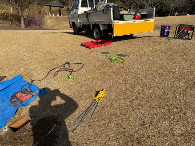 そんな事もあろうかと久々の登場!発電機持って行ってて大正解!ジャンジャンバリバリハツリ倒して