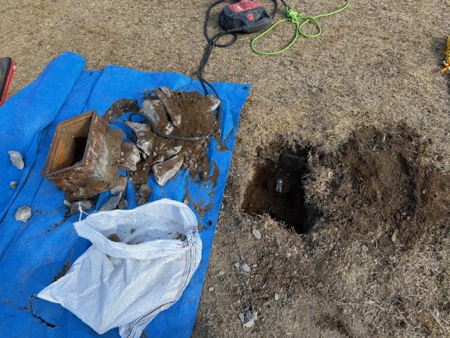 電源が無い。充電式簡易ハツリマシンでアタックするものの力不足で5秒で断念。