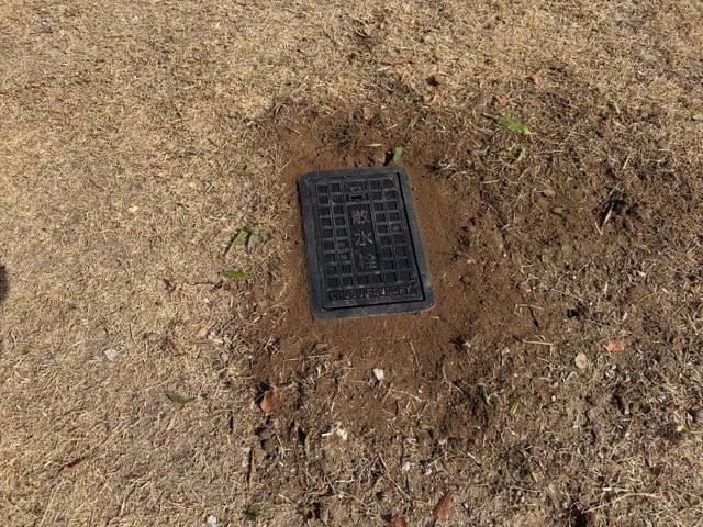 今日は公共作業3件対応です。場所は千里の大きな公園で散水栓ボックス交換です。とにかく広い公園で解放感抜群で気持ちいいのですが