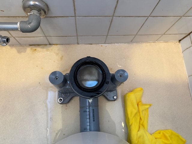 リモデル便器のフランジ部になんかありますね。