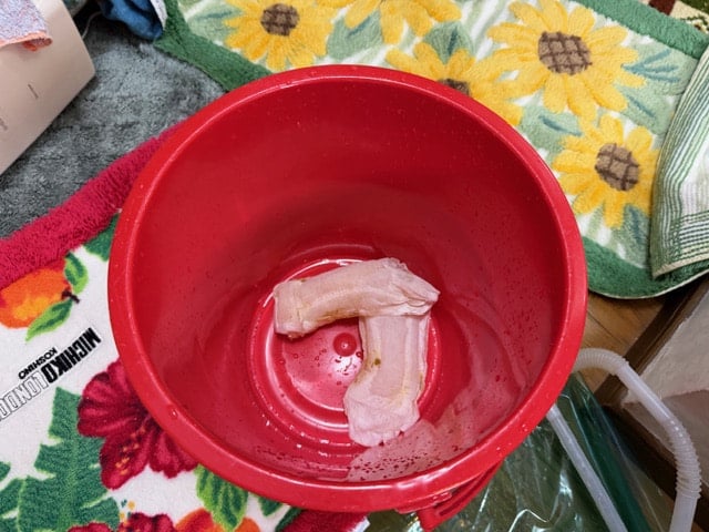 今日のスクランブルはトイレの詰まり。お客様が頑張って貫通を試みたのですが駄目でご依頼いただきました。とりあえず流さんくん!を排水桝にセットしてボンテンアタックするもダメ。これは汚物詰まりではなくパッド系かなにか洗剤等の蓋系かな?でも全く流れない状況なので便器を外すことに・・・・