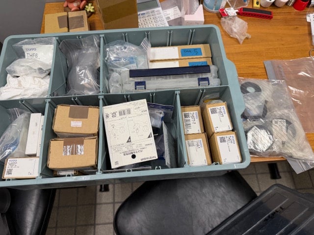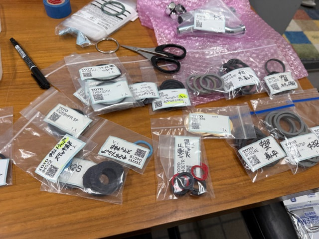 今日は事務所でトラックに積み込んでいる小物系資材の在庫と整理を徹底的に行いました。いつも一番嫌な事から始めて後半に楽をするのが好きな性格なので、初手は無限にあるパッキン類の整理。弱ったパケは新しいものに替えてたり劣化等が無いか確認。お前だれやったっけ?なんてパッキンは品番から答えを導き出して分かるように表記します。これで現場でもすぐ対応出来るのですが、年々わからんパッキンが増えていきますね。
