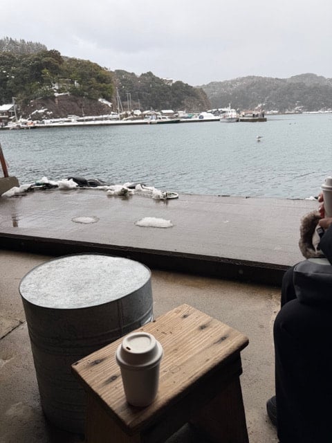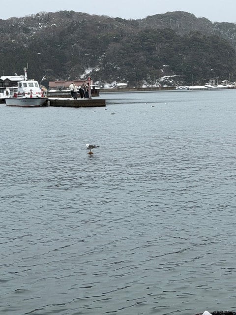 伊根の舟屋で一服していると・・・んん?水面にカモメ?