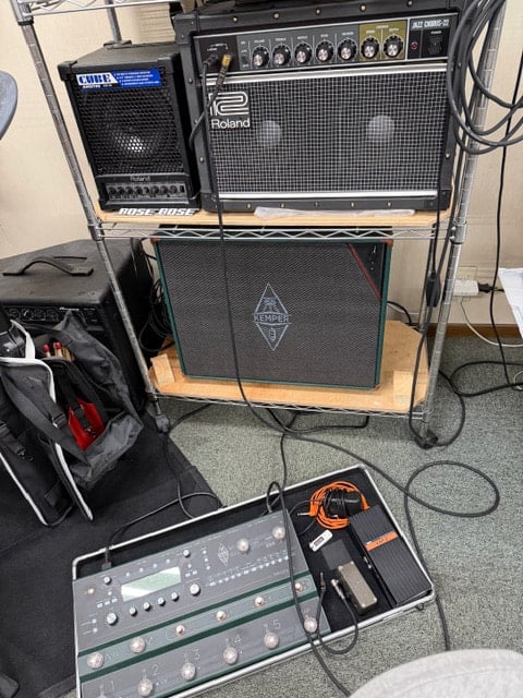 私のギター環境です。週末に自分の音に気になった部分があったのでネットで基礎を調べたりもしたのですが、情報が溢れていて何が正しくて何が間違ってるのかが分かんなくなりました。これはどんな事でも検索すると同じような状況になる事が多いと思います。そこで私はいつもお世話になってる梅田のI楽器のMさんに悩み相談しています。ネット情報もいいんかもしれんけどやっぱ信頼できる人との繋がりは大事です。どうやら悩みが解決しそうな気がしてきました