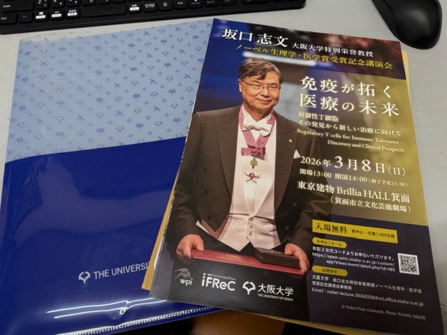 昨日は大阪大学特別栄誉教授・坂口志文先生の「ノーベル生理学・医学賞受賞記念講演会」を拝聴させていただきました。制御性T細胞に関する発見の過程、何故この研究を続けた経緯など詳しくお話しいただき感じた事は何故?どうして?どうやったらこうなる?じゃあやってみよう!の疑問から始まりトライアンドエラーを繰り返して突破する・・諦めず自分を信じて日々コツコツ続ける事で達成出来る手順は同じなんだなというのを学びました(レベルは全然違うけど基礎思考は同じ)。