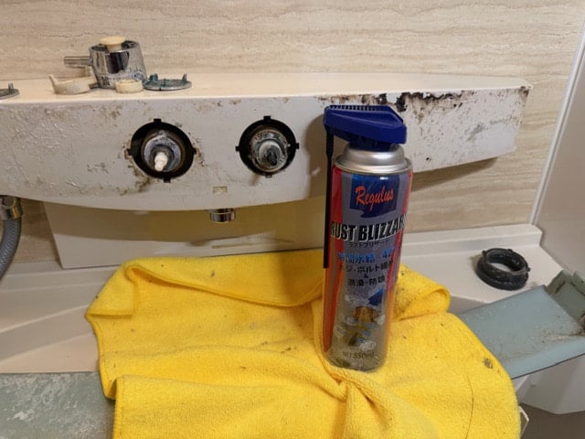説明書ではハンドルを取り外して切替弁ASSY固定ナットを外せばスポット抜けるというお話ですが2面幅極薄ナットが固着と腐食で外れない。