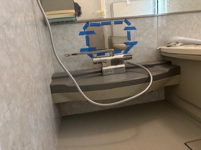 天井裏から床下まで見て回り構造を把握。配管の入れ替えが行えない事が分かりもしも壁と水栓の接続部が、Rc1/2ねじなら汎用水栓へ交換できるかも?ここから先は後戻りは出来ないと理解しつつお客様に万が一最悪の状況も伝え